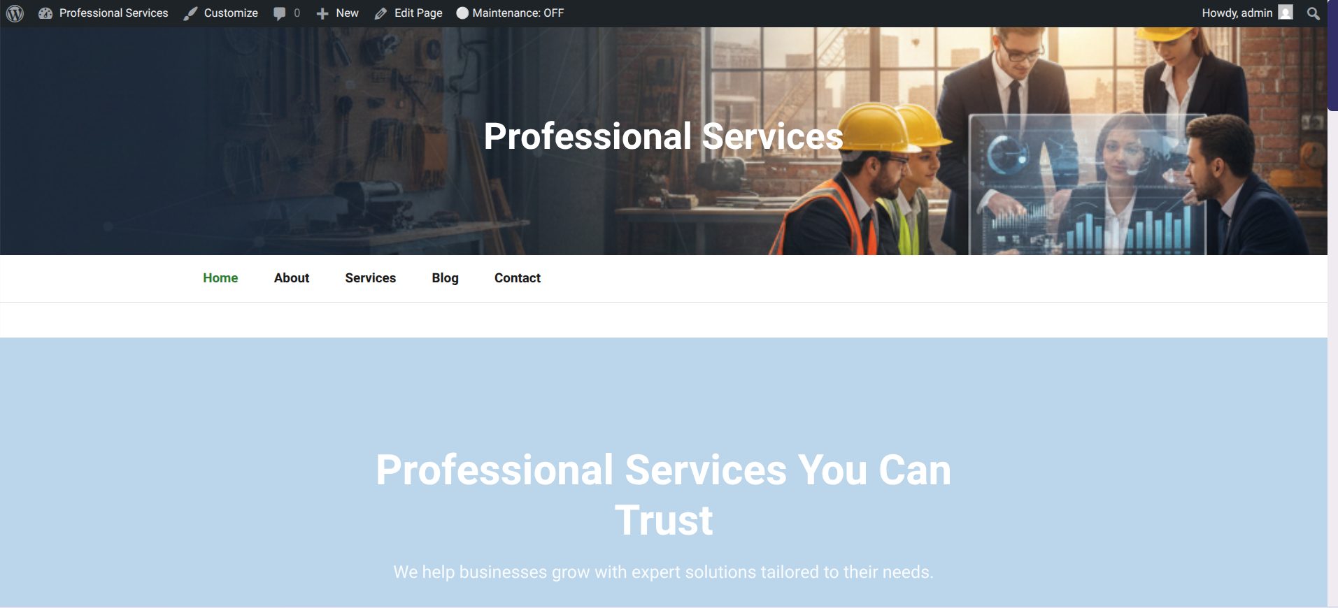 The standard theme gives you a service card. The Pro gives you an empire. Add unlimited services with icon picker and image support. Showcase client testimonials in a grid or an auto-playing carousel with star ratings. Introduce your team with photos, bios, and social links. All managed through intuitive repeater controls in the WordPress Customizer, add, reorder, and remove with drag-and-drop simplicity.